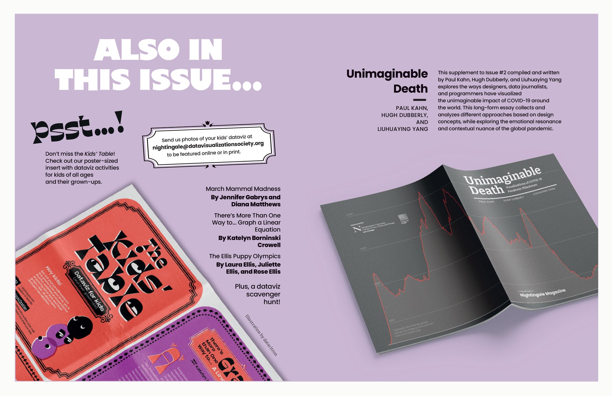 - "Unimaginable Death: Visualizations of COVID-19 Pandemic Milestones" - a 40-page booklet exploring the formats of data visualizations by news teams around the world.